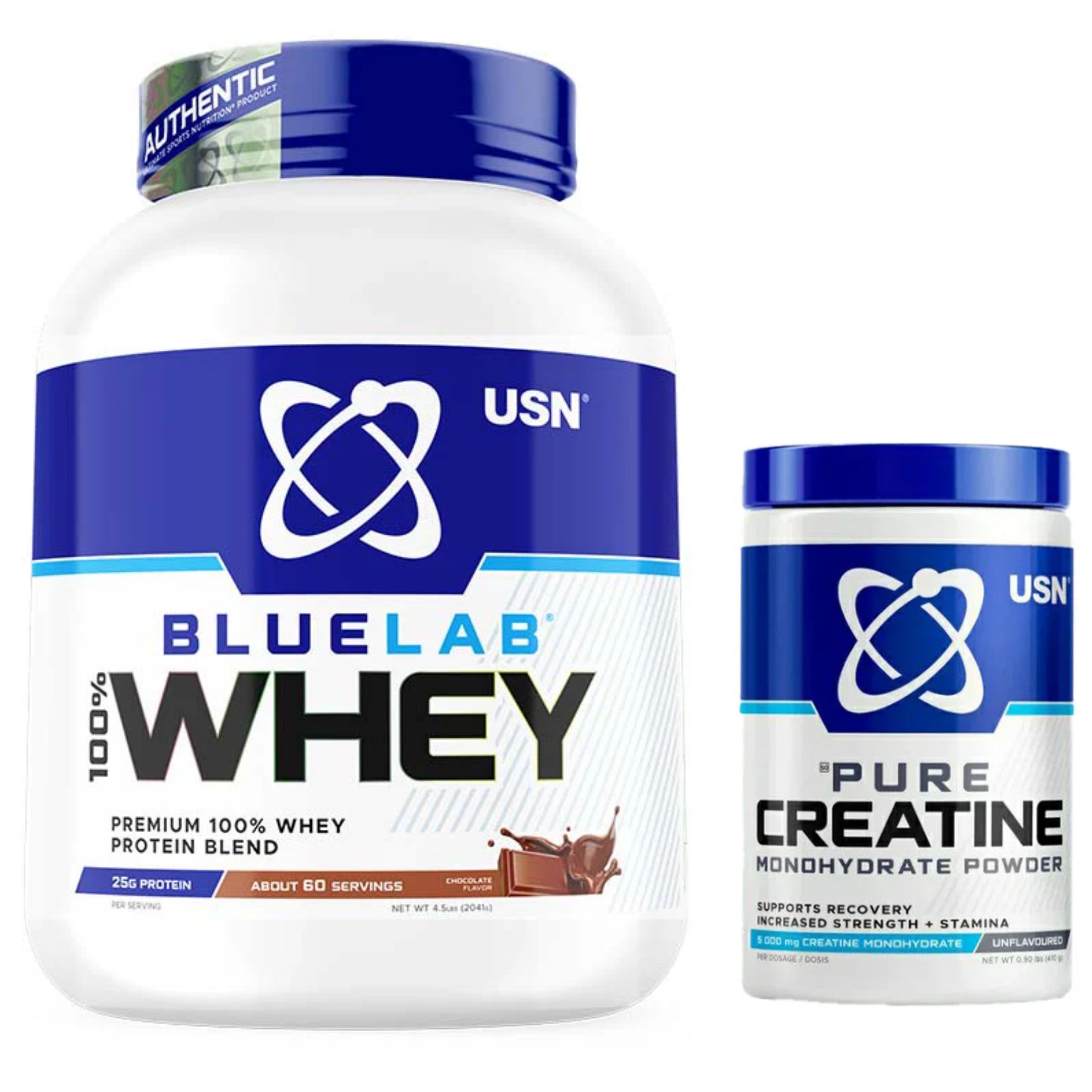 این پکیج شامل دو مکمل پرچمدار است: پروتئین وی بلولب ۱۰۰٪ (BlueLab 100% Whey) برای تأمین آمینواسیدهای حیاتی با جذب سریع، و کراتین مونوهیدرات پیور (Pure Creatine Monohydrate) برای شارژ مجدد ذخایر انرژی و افزایش قدرت. با استفاده همزمان از این دو محصول، مطمئن میشوید که عضلات شما هم سوخت لازم برای رشد را دارند و هم نیروی مورد نیاز برای تمرینات سخت را. پکیج USN راهکار مستقیم شما برای جهش در عملکرد است.