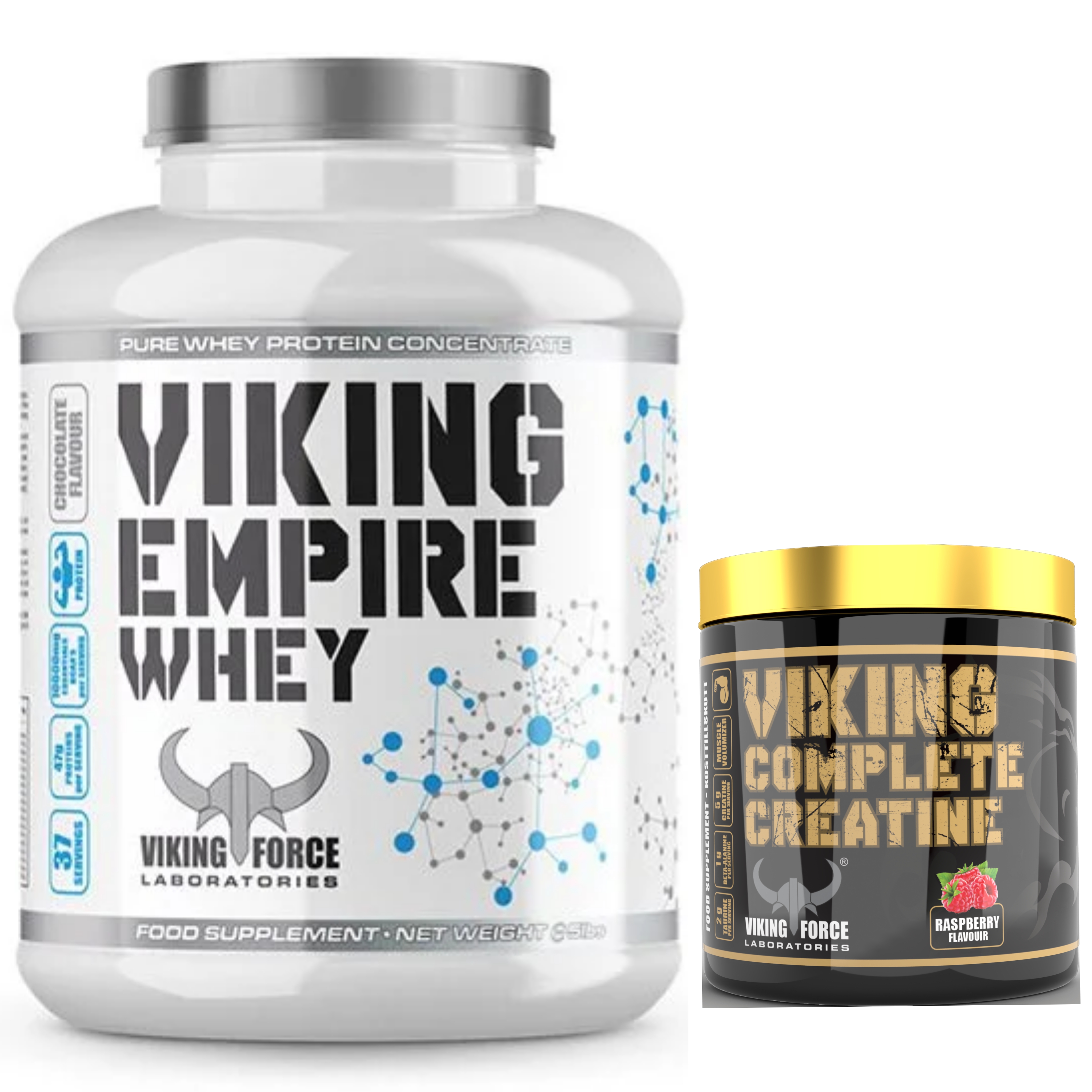 پکیج حجم و قدرت وایکینگ: پروتئین وی خالص (Viking Empire Whey) + کراتین کامل (Complete Creatine) برای حداکثر رشد، ریکاوری و انرژی انفجاری