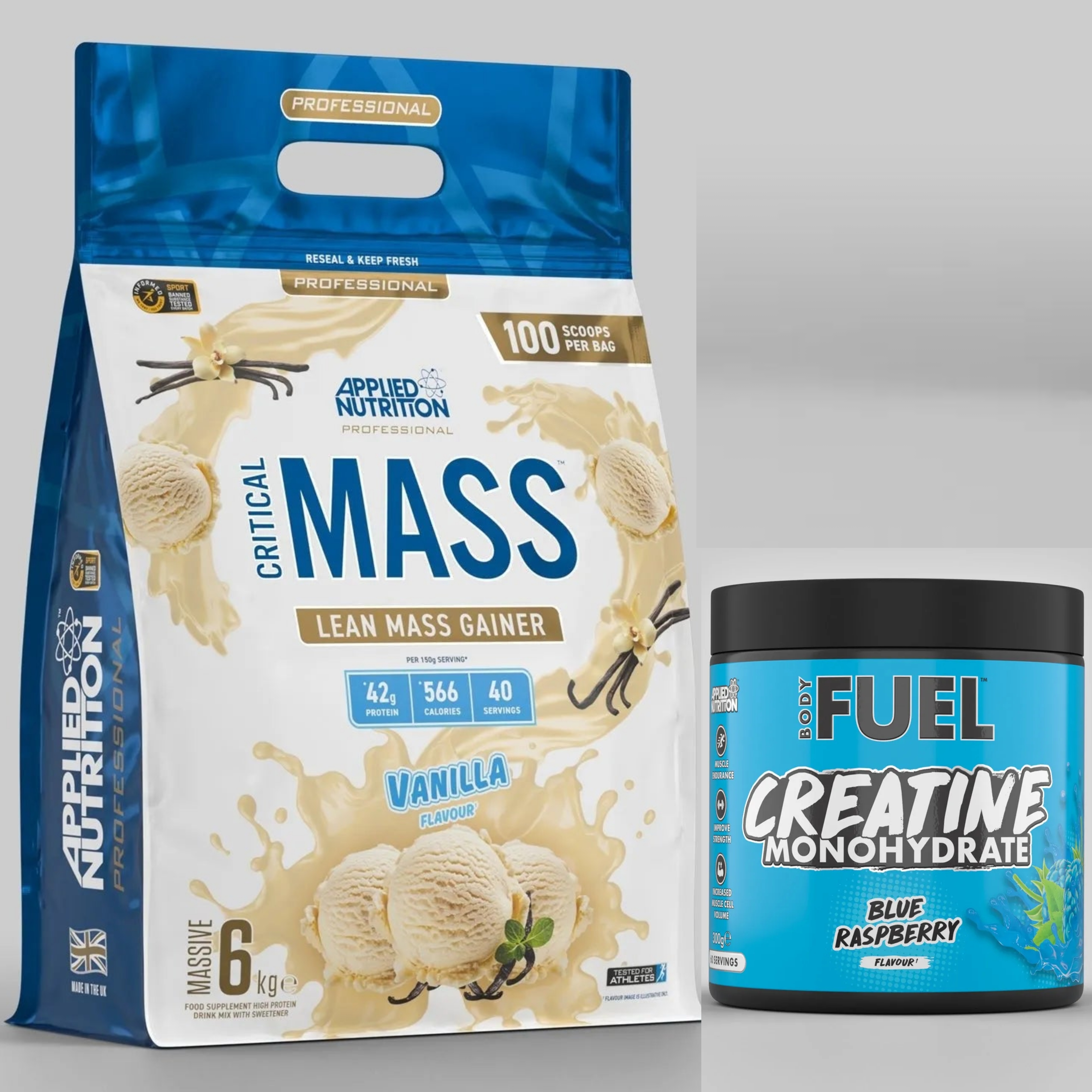 این پکیج با ترکیب هدفمند دو محصول پرفروش از برند بریتانیایی اپلاید نوتریشن (Applied Nutrition)، یک استراتژی ایدهآل برای ورزشکارانی ارائه میدهد که به دنبال افزایش حجم عضلانی باکیفیت (Lean Mass)، تقویت عملکرد و بهبود ریکاوری هستند.